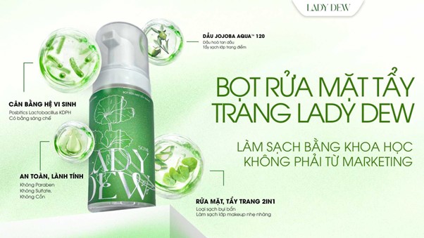 Lady Dew Bọt rửa mặt tẩy trang 2in1 được phát triển dựa trên triết lý “Làm sạch từ khoa học, không phải từ Marketing” – một hướng đi khác biệt trong bối cảnh thị trường mỹ phẩm đang quá tải với quảng cáo cảm tính.